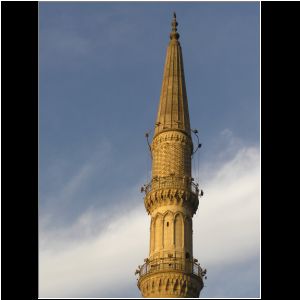 türkischen Stil errichten. Die über 80 m hohen Bleistiftminarette sind