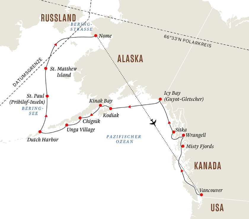 um die entlegenen Aleuten bis nach Nome. Sie werden