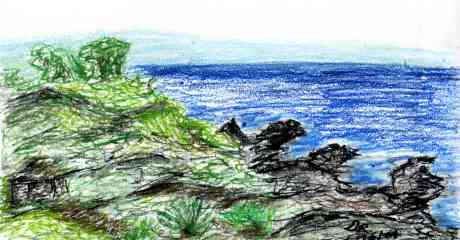 | Caloura Sao Miguel Inferno Sao Miquel Ölpastellzeichnung Dirk Rauschenbach |