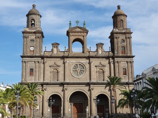Die Kathedrale Santa Ana finden Sie im Herzen von Las Palmas an der Plaza de Santa Ana. Diese Kathedrale ist ein monumentales Bauwerk aus der Kolonialzeit. Sie wurde ab dem Jahr 1497 erbaut und besteht aus fünf Schiffen. Zwei prächtige Glockentürme verzieren rechts und links den Giebel des sakralen Gebäudes.Der Fertigstellung der Kirche dauerte fast 400 Jahre und reichte durch die Epochen der Gotik, Renaissance und Neoklassik hindurch, welche sich alle im Bauwerk der Kathedrale widerspiegeln. Die Kapellen im Inneren beherbergen viele außergewöhnliche Kunstwerke. Drei große Torbögen ermöglichen den Zugang zu diesem Gotteshaus. Sie sind zum Vorplatz ausgerichtet, dem großzügig angelegten Plaza de Santa Ana. Links und rechts mit Palmen geschmückt finden Sie hier Bänke zum Verweilen. Direkt vor dem Platz sehen Sie bronzene Hundeskulpturen. Sie sind die Wappentiere von Gran Canaria.Die Kathedrale beherbergt das Museum der Sakralen Kunst (Museo Diocesano de Arte Sacra), Hauptsächlich Gemälde, eine Sammlung spanischer Skulpturen und wertvolle sakrale Objekte werden hier ausgestellt. Santa Ana ist der Sitz des Bischofs der Kanarischen Inseln.