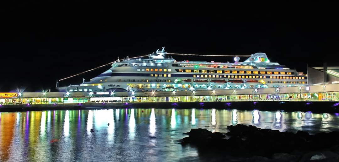 Acores Sao Migel Punta Delgada Einfahrt in den Hafen Acores Sao Migel Punta Delgada Cara illumination