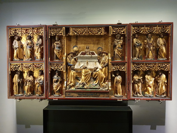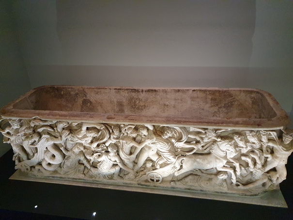 Dom Aachen Karl der Große Schatzkammer 2.0 Sarkophag wo früher die Beine von Karl der Grossen lagen Proserpinasarkophag Dom Aachen Karl der Große Schatzkammer 2.0 Reliquien Bibeleinband mit Gold + Silber + Elfenbein