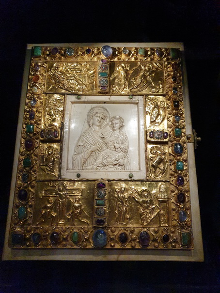Dom Aachen Karl der Große Schatzkammer 2.0 Reliquie  Bibeleinband mit Gold + Silber + Elfenbein + Edelsteinen Dom Aachen Karl der Große Schatzkammer 2.0 Reliquie Reliquien Bibeleinband mit Gold + Silber + Elfenbein