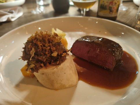 Hotel Kasteel Bloemendal Menü Clermont Rillette vom Fasan  Gänseleber Creme Sauerkrautsalat Erdnuss - kekse Hotel Kasteel Bloemendal Limburger Hirsch Spitzkohl Sauerbraten vom Hirschrücken und Wildsauce