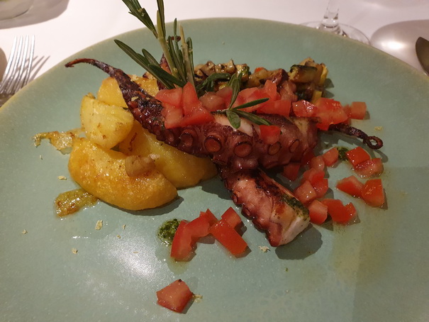 Lauwarmer Oktopussalat Mykonos Style mit Kartoffeln, Staudensellerie und Kalamata Oliven .... 16,- € Lukewarm Octopus salad with potatoes, celery and Kalamata olives Lauwarme Riesengarnelen auf Wildkräutersalat mit Apfel ...................................... 18,- € Lukewarm Black Tiger Prawns with wild herb salad and apple Roh marinierter Lachs mit Aromen von Zitrusfrüchten und grobem Meersalz ......................................................... 15,- € Raw marinated salmon with flavors of citrus fruits and coarse salt Veganer Wildkräuter Salat mit Granatapfel Dressing Beeren und Nüssen ............ 18,- € Vegan wild herb salad with pomegranate dressing, berries and nuts
