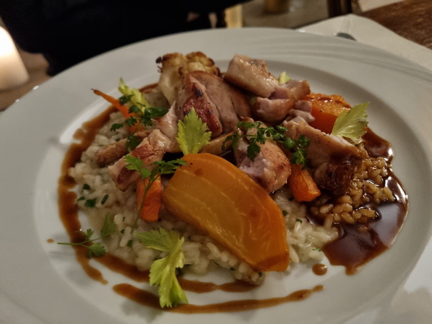 | Entenbrust aus Frankreich Rotkohl Kartoffelklößchen Marone |