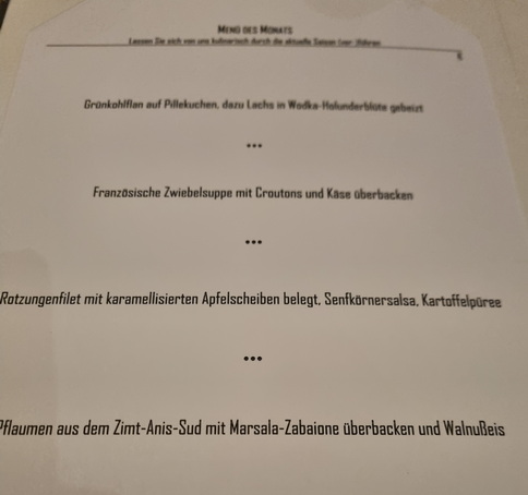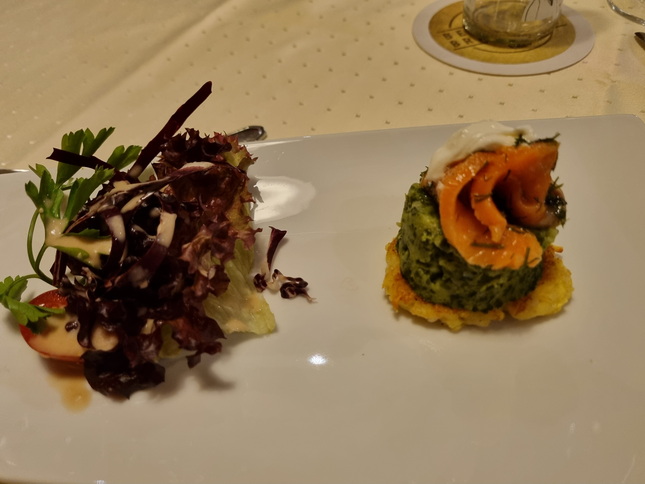 Gummersbach Grünkohlflan auf Pillekuchen dazu Lachs miin Wodka Holunderblüte