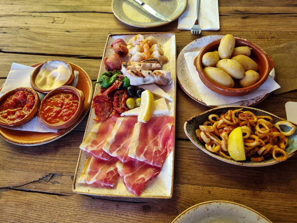 Fisch- und Fleischgerichte nach traditioneller Art. Leckere Weine |