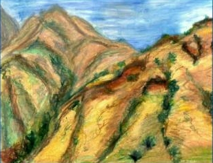 | Strand bei Rethymon auf Kreta in Ölkreide | Berge am Limni Kournas auf Kreta ( Einziger Süsswassersee ) in Ölkreide |