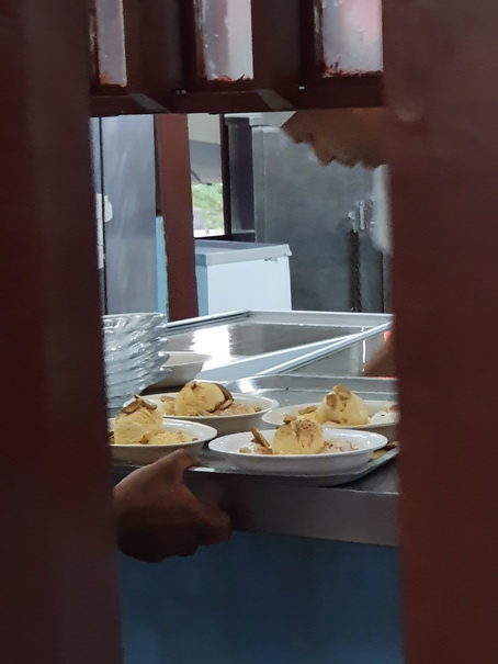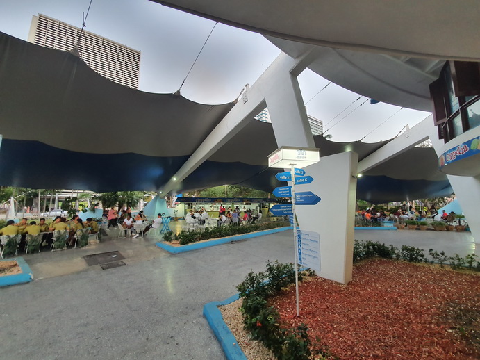 Der das Gebäude umgebende Parkbereich ist mit einer üppigen Bodenbedeckung und einem Baldachin aus hoch aufragenden Banyan-Bäumen versehen, die den Essbereichen unter freiem Himmel Schatten spenden. Kurvige Wege führen zu einem erhöhten runden Pavillon, in dem sich die einzigen Sitzgelegenheiten im Inneren des Gebäudes befinden.