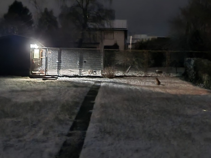 nach 12 Jahren bekommt Donna nachts um 2 Uhr  Besuch von einem Fuchs  er setzt sich vor den Zwinger und Donna ist außer sich vor Rage Beute .....aber hinterm Zaun