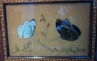 Butterfly Schmetterling Tablett Intarsienarbeit mit Glas und Schetterlingen