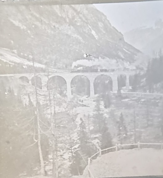 Villeurbanne  Brunne mit Säule Viadukt Dampfeisenbahn Albua Viaduct III Albua Bahn Albulalinie oder Albulastrecke genannt, liegt im Schweizer Kanton Graubünden