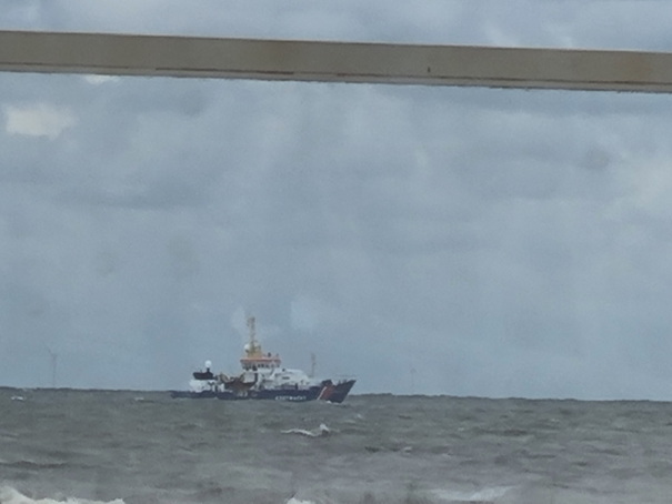 Stranblick die jeden Morgen Badewütigen bei Wind regen Sturm in de Zee