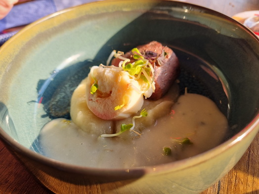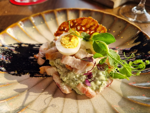 | Holland Ostern 23 Scheveningen Paasdag Dagvisser das Fischrestaurant 4 Gangen Paasmenue | Holland Ostern 23 Scheveningen Paasdag Dagvisser das Fischrestaurant Tarte vom Aal auf Tzaziki Broche Granny Smith Apfelstücke |