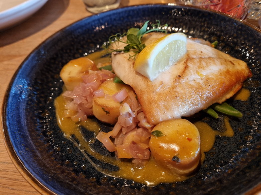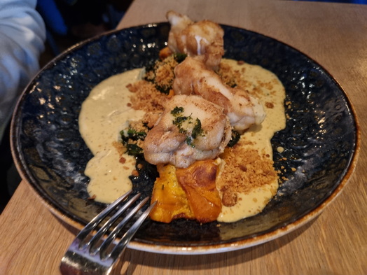 | Dagvisserrestaurant Leyklade Seeteufel medallions | Dagvisserrestaurant Leyklade brulee Rumkarameleis |