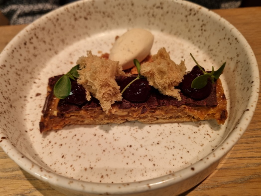 | Dagvisserrestaurant Leyklade Hausgemachter Snicker Haselnuss Blaubeeren Erdnussparfait | Dagvisserrestaurant Leyklade |