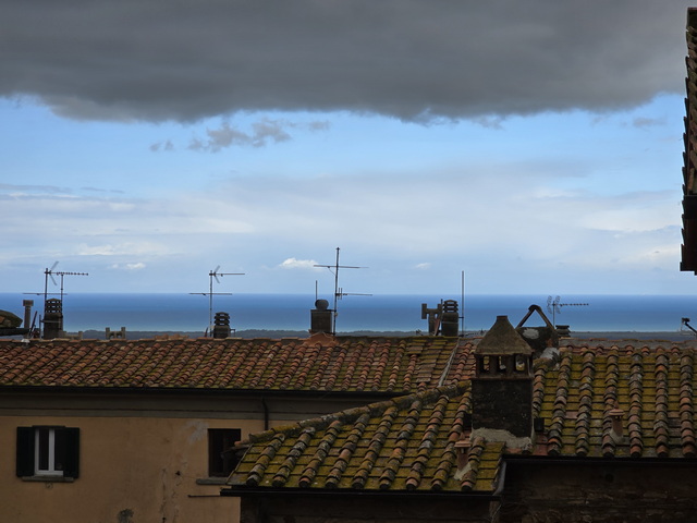 | Castagneto Carducci grosses weinbergdorf mit Castello di Castagneto | Castagneto Carducci über den Dächern ist das Meer |