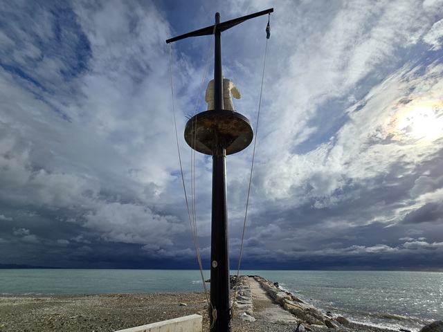 | Cecina Hafen Strand Stadt | Il Gabbiere Figur mit Mast in cecina |