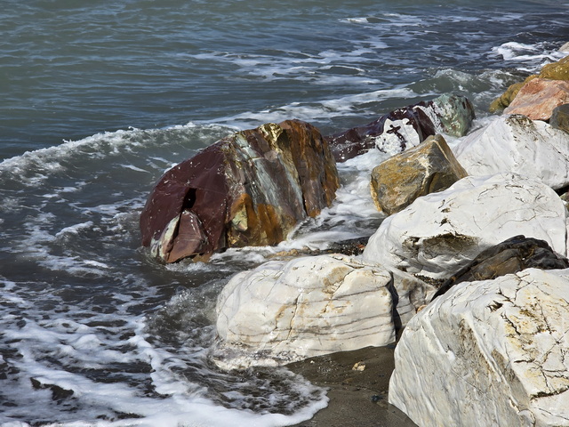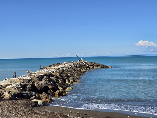 | Park Hotel Marinetta Beach Marblebeach Marmorsteine im Meer cecinabeachwalk | Park Hotel Marinetta Strand Wanderung bis cecina beachwalk Blick auf Capraia |