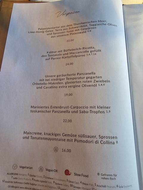 | Ristorante Anfora Di Baratti Ei pochiert mit Kürbisblüten auf Brot | Ristorante Anfora Di Baratti Kalamar mit Büffelmilchricotta den tentakeln und Mazzancoller gefüllt auf Porree Kartoffelpüree |