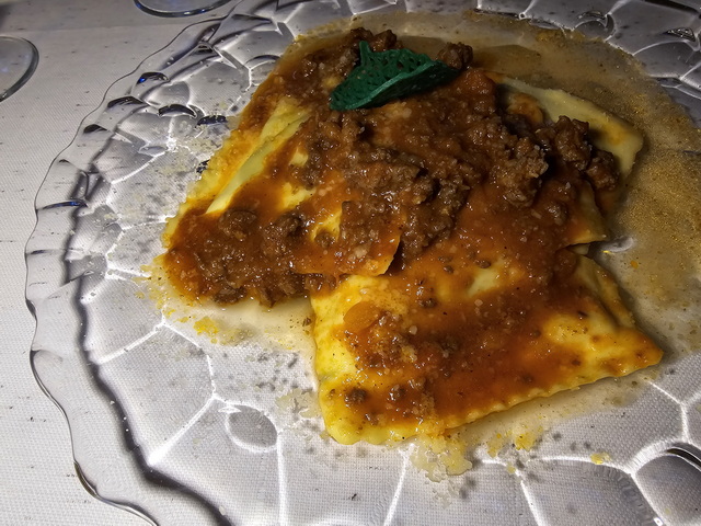 | Ristorante Anfora Di Baratti Maremmer Ravioli mit Ragout Chianina Rindfleich | Ristorante Anfora Di Baratti Dorade Orata |