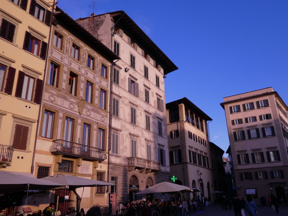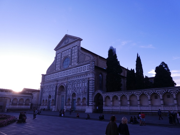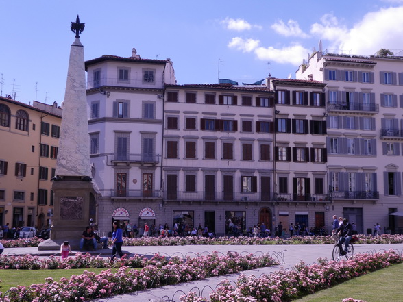 Florenz Piazza Santa Maria Novella Der rasenbewachsene Platz Piazza di Santa Maria Novella befindet sich am westlichen Rand der Altstadt. Die Nordseite des Gebietes wird von der eindrucksvollen Marmorfassade der gleichnamigen Kirche Santa Maria Novella geprägt. Nach einem Spaziergang auf dem Platz bietet sich ein Besuch der künstlerisch wertvollen Kirche an. Die Dominikaner-Mönche der Santa Maria Novella zogen mit ihren Predigten und Prozessionen im 13. Jahrhundert bis zu 40.000 Menschen an. Jedoch waren die Räumlichkeiten des Gotteshauses nicht für solch einen Besucheransturm ausgelegt und so ließ man zwischen den Jahren 1287 und 1325 mehrere Häusern direkt vor der Kirche abreißen, um ausreichend Platz für die Gläubigen zu schaffen. Die Piazza ist daher im Vergleich zu anderen mittelalterlichen Plätzen ungewöhnlich großräumig. Firenze   Im weiteren Verlauf der Geschichte erreichte die Piazza di Santa Maria Novella als florentinische Rennstrecke Berühmtheit. In der Zeit von 1593 bis 1858 fanden hier über 250 Jahre lang Pferdewagenrennen statt. Der Wettkampf "Palio dei Cocchi" wurde alljährlich am Johannistag ausgetragen. Dabei kämpften die ältesten vier Florentiner Stadtteile San Giovanni, Santa Maria Novella, Santa Croce 30 und San Frediano gegeneinander um Ruhm und Ehre.