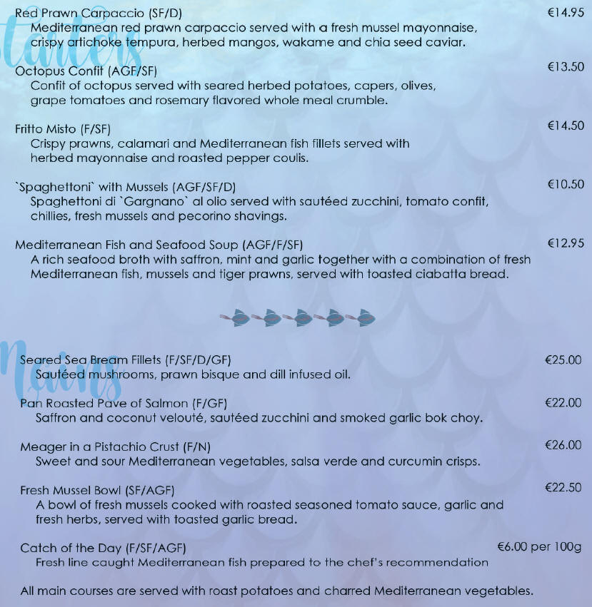 Während der Sommermonate geöffnet, serviert dieses fantastische à la carte Restaurant Fisch und Meeresfrüchte. Menü verfügbar, klicken Sie bitte auf die Schaltfläche unten.