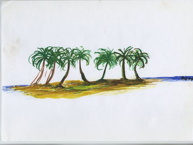 Sandbank Saba mit 7 Palmen Juani +Jibondo Rocks Mangrove Islands