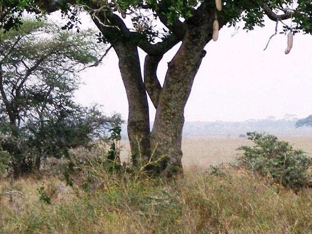 | Leopard liegt auf der Astgabel im Leberwurstbaum | Leberwurst-Leopard |