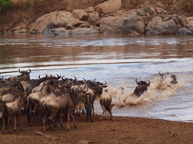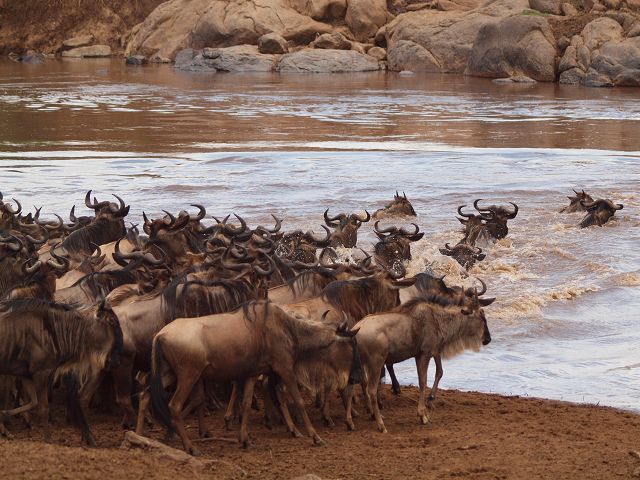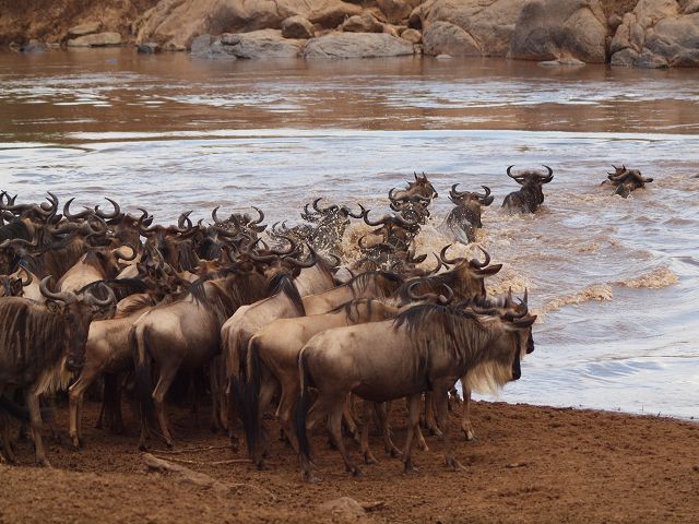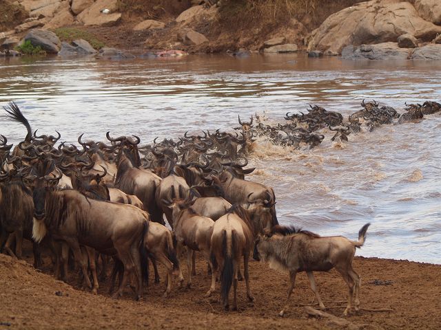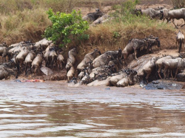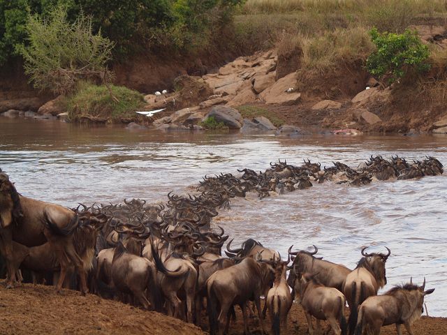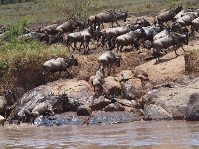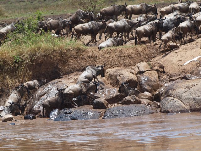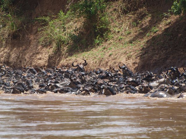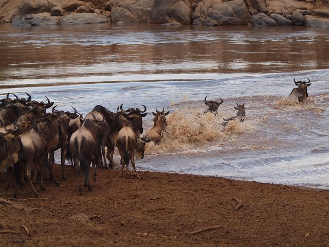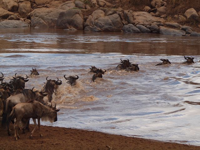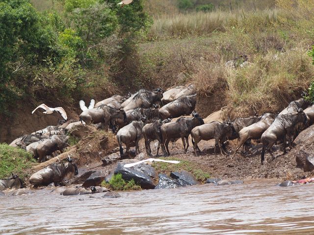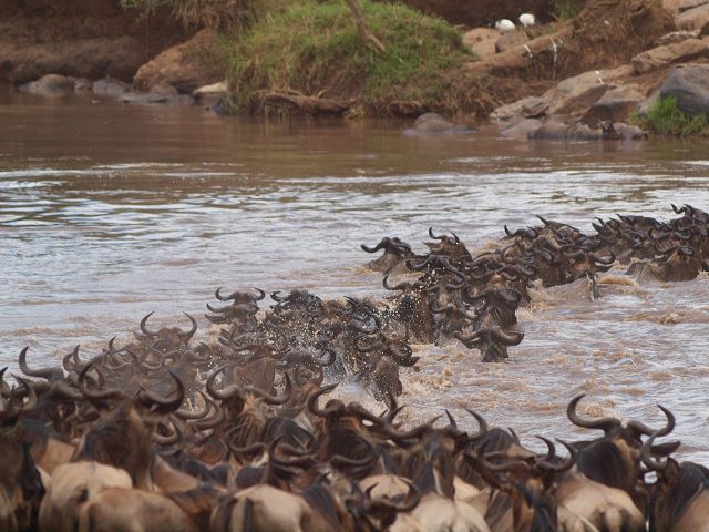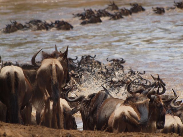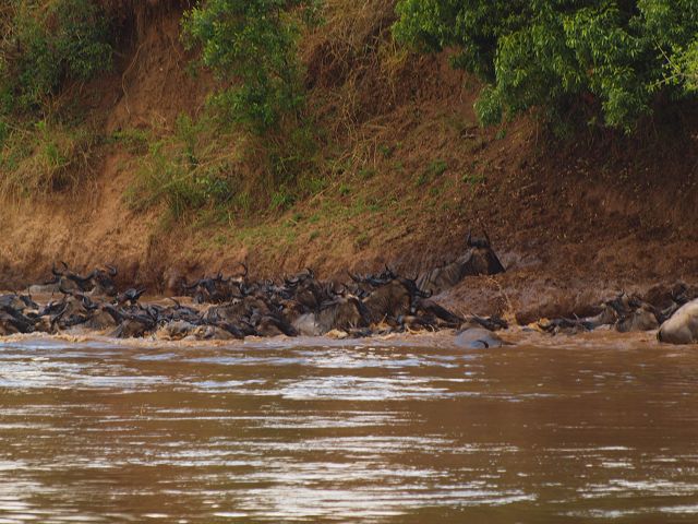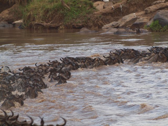 zurück Masia Mara 2010   zurück Äthiopien    Masai Mara Crossing Wildebeest Crossing