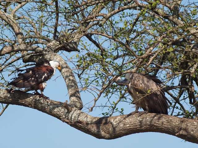 | African Fisheagle + Geier Weißrückengeier Gyps africanus | African Fisheagle + Geier Weißrückengeier Gyps africanus |