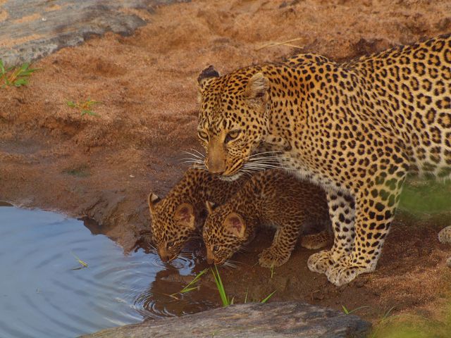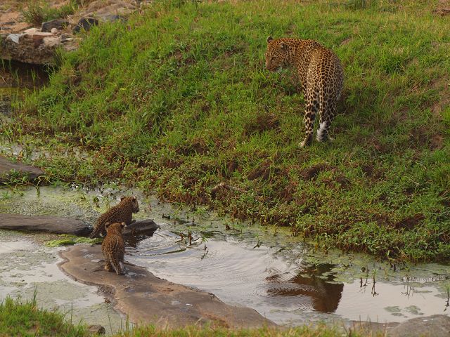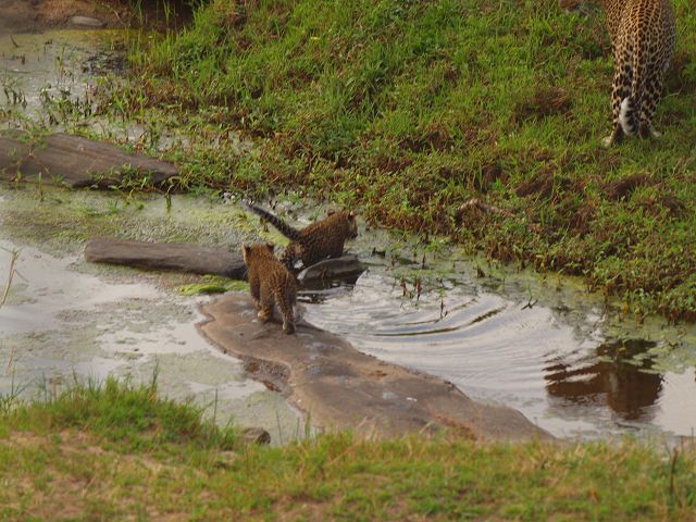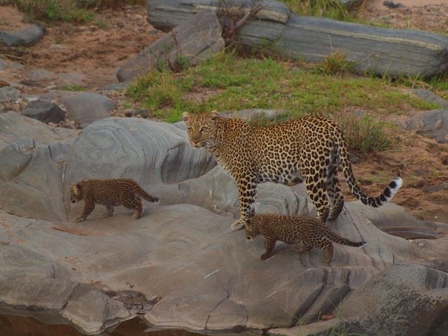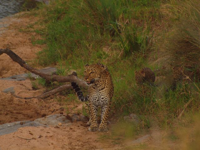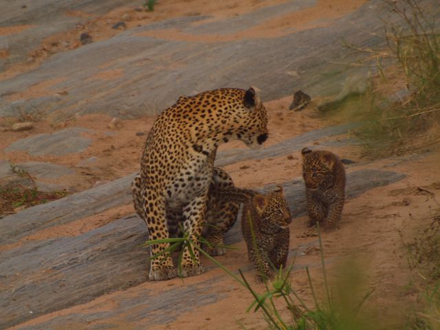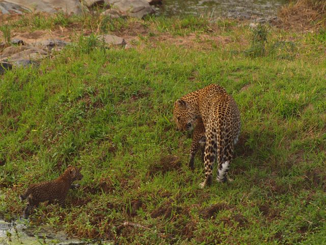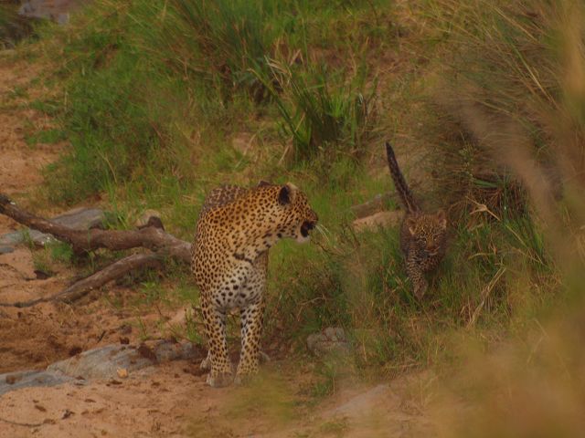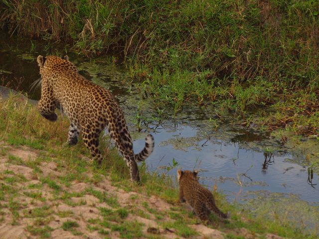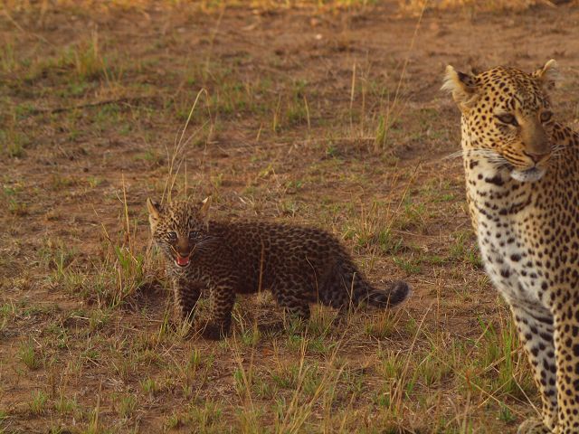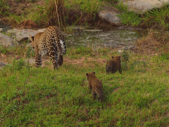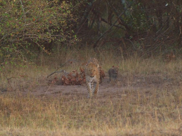 Sie holt die 2 Kleinen aus dem Versteck und geht zum dem Riß ( morgens 6:30 ) chuikidogo chui kidogo leopardenjunges