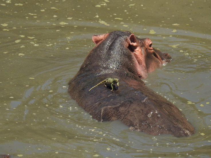 | Hippo Flusspferd mit Chamäleon auf Rücken | Masai Mara Hippopool Kiboko |