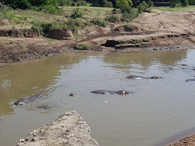 | Hippopool Flusspferde im Seitenarm des Mara River Kiboko vollscheiße | Masai Mara Hippopool Kiboko vollscheiße |