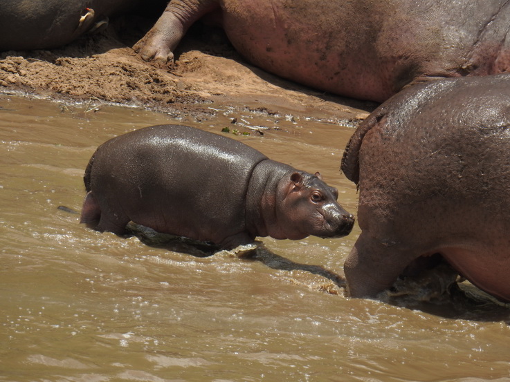 | Flusspferdjunges Mara Kiboko hat nur Spielen im Kopf | Masai Mara Hippopool Kiboko |
