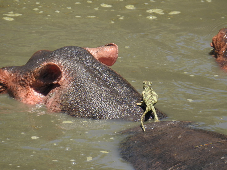 | Hippopool Flusspferde im Seitenarm des Talek River Kiboko | Masai Mara Hippopool Kiboko Talek Chamäleon auf Flusspferd |
