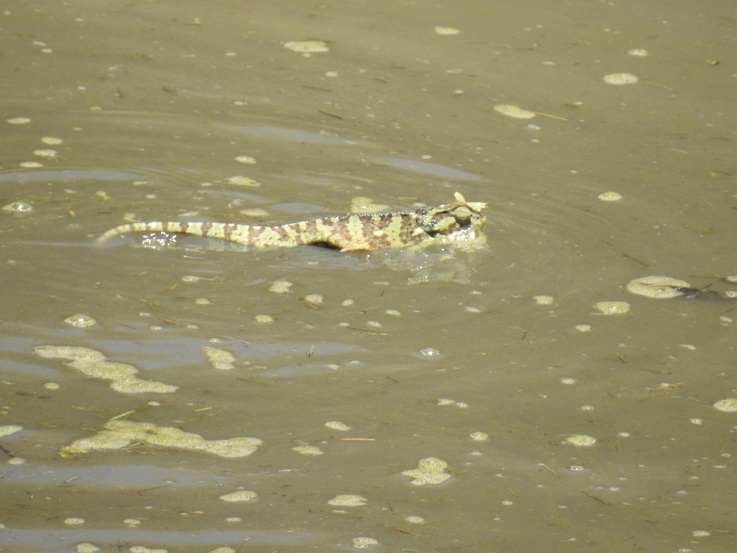 | Hippopool Flusspferde im Seitenarm des Mara River Chamäleon | Masai Mara Hippopool Kiboko Chamäleon schwimmt Beinchen in die Höhe |