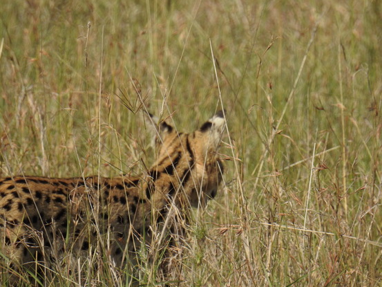 Der Serval hat von allen Katzen relativ gesehen die längsten Beine, was dazu beiträgt, für die Jagd im hohen Gras Höhe zu gewinnen. Er kann 6 km pro Nacht laufen, wenn die Beute knapp ist. Die Hauptfunktion der hohen, vertikal gesetzten Ohren besteht darin, als Schalltrichter zu fungieren, die eine genaue Ortung der Beute ermöglichen.