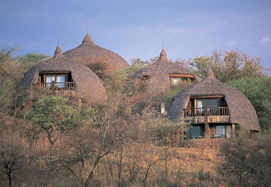 Serengeti Serena Lodge 2 stöckige Beehuts von der Eingangsseite Serengeti Serena Lodge Pool