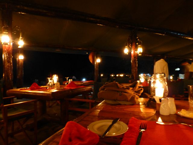 | Siana Springs Tented Camp Restaurant mit Boma | Siana Springs Tented Camp im Restaurant |