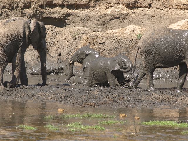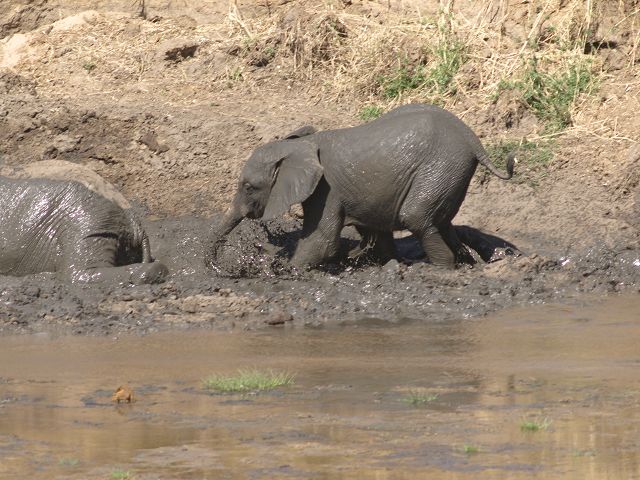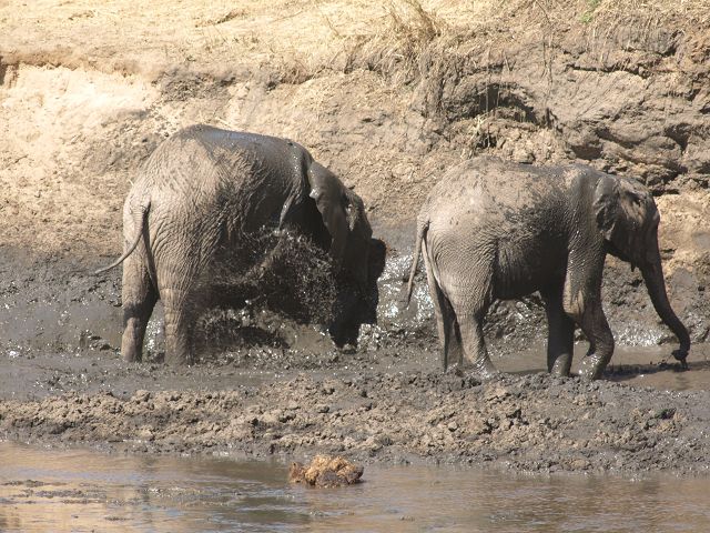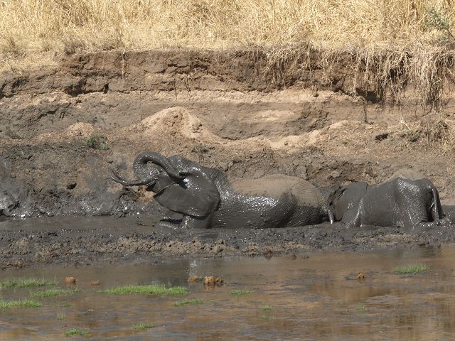 zurück    Tembos von Tarangiere Nationalpark  im Schlammbad               Migrationsafari 2009