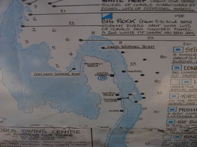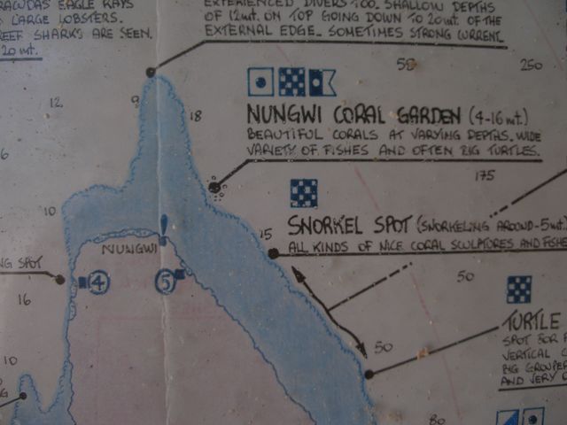 • Sie ist von einem Korallenriff (Mnemba Atoll) umgeben, einem der artenreichsten Marine-Schutzgebiete Ostafrikas mit über 600 Fischarten und drei Delfinarten .