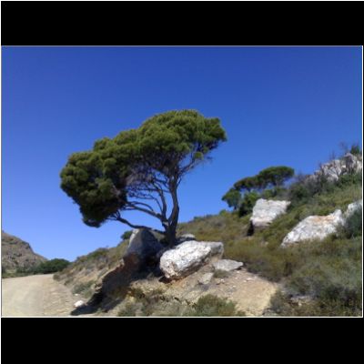 | Pinie auf dem Hinweg | Diesselbe Pinie auf dem Rückweg | Blick wieder auf Cadaques |