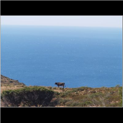 | Blick auf die Bucht von Rosas | vorbei an luftigem Stier | Abstieg in die Bucht von Cala Joncols |
