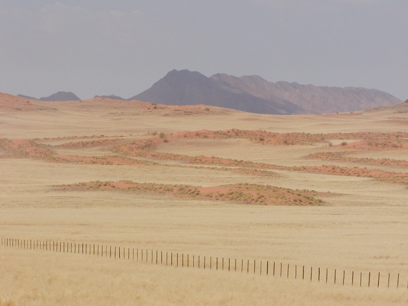endlose Zäune der erste Eindruck Namibias Weiten des Farmlandes am Rand der NamibWüste