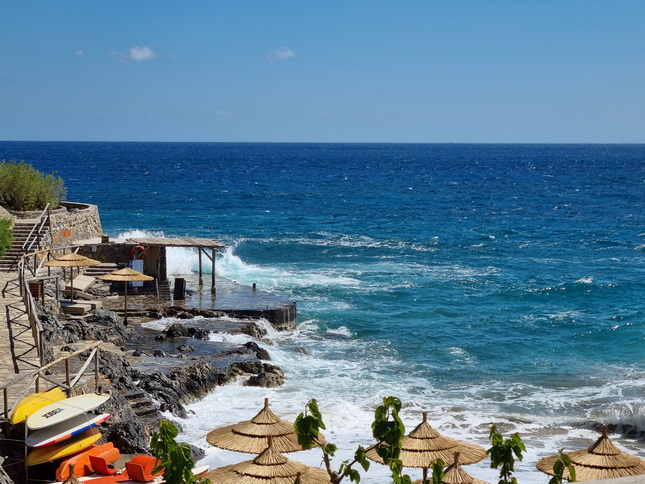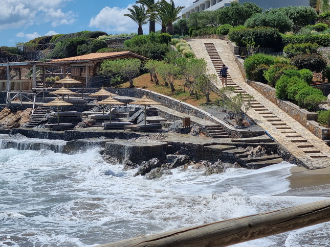 | Minos Palace hotel & suites Unsere Liegeplatz wurde höher geleht Hohe wellen | Minos Palace hotel & suites heute wellen sehr hoch |