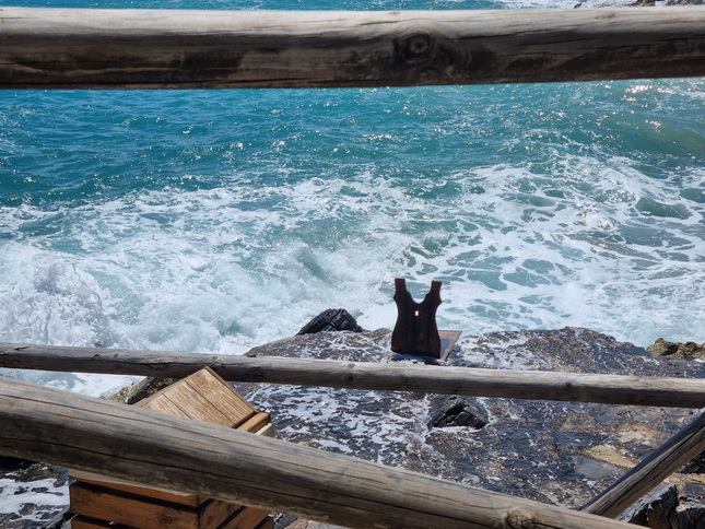 | Unserer Liegeplatz leicht erhöht | Minos Palace hotel & suites Tisch schwimmt weg |