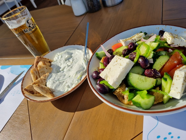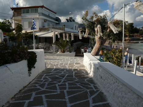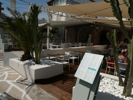 Agios Nikolaos Achinos Restaurant + Strand + Liegen Minibeach in de Stadt |