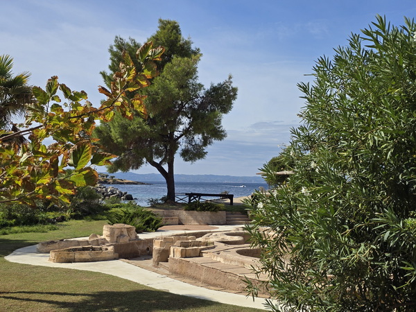 | Hotel Porto Carras Meliton Superr wassertropfeneffekt | Hotel Porto Carras Häuser oberhalb der Strasse |